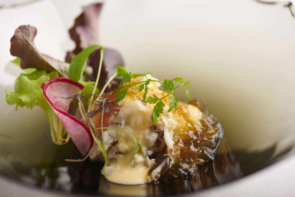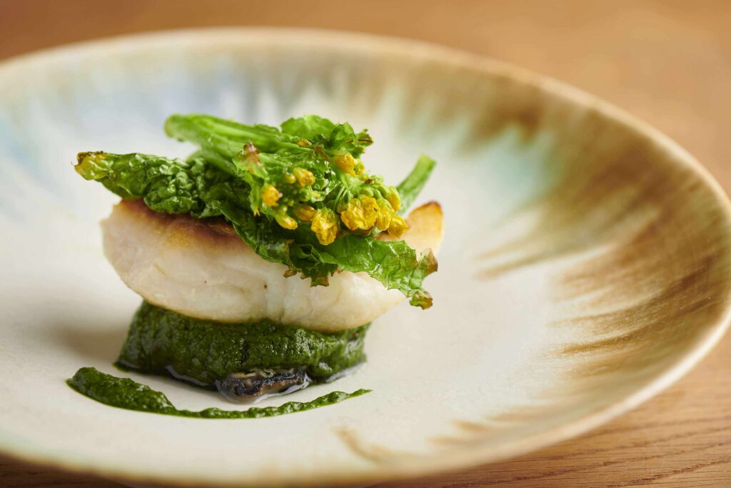 Le Japonのシェフ、中田耕一郎さんはいわき市出身の出身で、普段から積極的に福島県産食材をコースに組み込んでくださっています。この日は、すべての料理で福島県の食材を使うとともにFUKUSHIMA SAKE SEVENのお酒をペアリングして楽しませてくれます。
